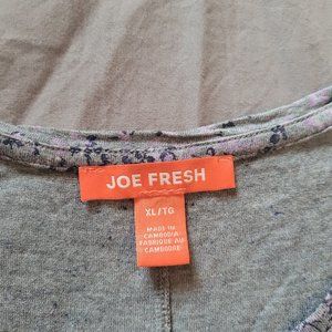 XL Joe Fresh Grey Floral Relaxed Tee with front pocket and rounded hem