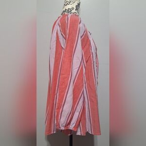 Chic blouse with pink and red stripes. Ideal for casual wear.