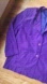 couple of small spots on front as pictured, a flaws in material or stretching on back seam, built in shoulder pads, ultra light material either polyester or possibly silk would be my guess, color is an Irradescent purple.