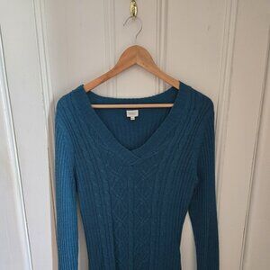 XL Suzy Shier Teal Blue Acrylic V-Neck Sweater (18" PTP)