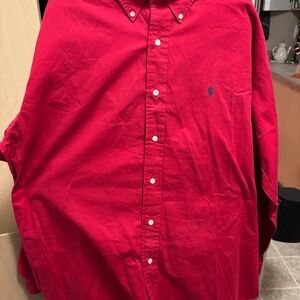 Elevate your style with this classic Polo Ralph Lauren Blaire button-down shirt. Featuring a rich wine red color, this shirt is crafted from 100% high-quality cotton for a soft and comfortable feel. Designed with a tailored fit and long sleeves, it’s perfect for casual outings or layering under a blazer for a dressier look. Size XL ensures a comfortable fit.