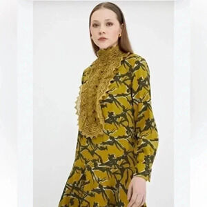 Combining innovative patterns and vintage style, the green dress becomes one of the savior pieces of the wardrobe. The green dress, which attracts attention with its button details and ruffle details on the skirt, provides easy combination. It provides easy use during the day without causing you to sweat, thanks to its printed patterned woven fabric that keeps quality and comfort at the highest level. Due to the lace and button details on the front, you can choose minimal accessories and easily combine it with boots in cold weather and open-heeled shoes in hot weather. You can go to a special invitation, workplace, or friends' meetings with a lace detailed dress.