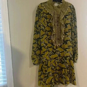 [XL] adL Patterned Mini Dress with Lace Detail on the Front 12440470000- NWOT