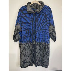 XL, designer, Sarah Pacini sweater, made in Italy in blue, gray and black.