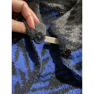 Categorized as One Size, however based on measurements it would best fit someone Large to XL for an oversized look. Abstract print, Sarah Pacini designer sweater with one snap closure at neck. Made with super fine alpaca, merino wool and mohair blend. Made in Italy. This sweater could easily be belted. Little to no wear or pilling!