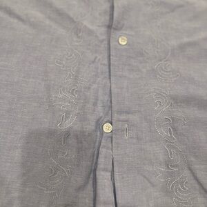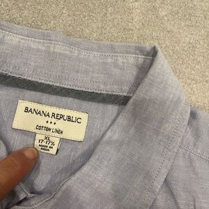 [XL/17-17.5]Banana Republic Men's Blue Short Sleeve Linen Blend Button Shirt