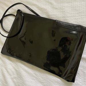 XL Vintage black patent clutch/shoulder bag