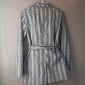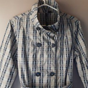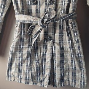 XNTRIK Cotton Short Trench | Taupe & Blue Plaid, L