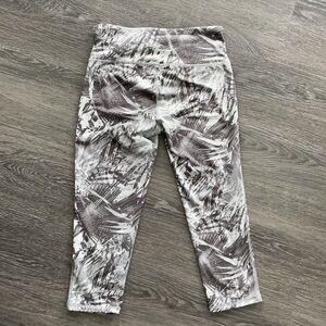 Athleta inc XS cropped leggings in EUC. Light grey/charcoal colour. Approximate measurements 13” at waist laying flat, 21” inseam. Seams and cuffs are great and no visible wear. The first two images are for inspiration only and not for sale and are similar to the listed garment. The listed item is featured in the remaining images.