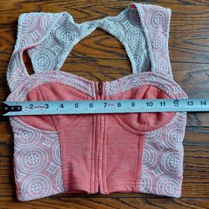 Unique crop top with lace details and zipper.