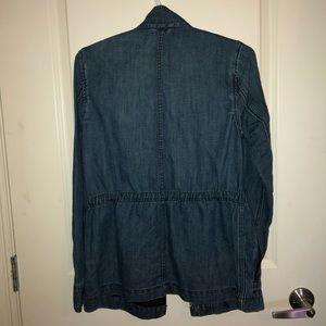 XS jean jacket from Gap. Never worn! Jacket zippers as well as buttons which are all intact. Banded waist which is adjustable from the inside as shown in picture.