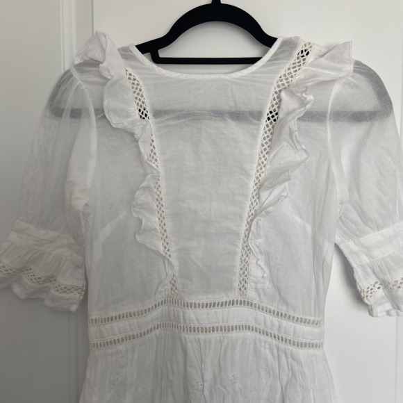 Really cute white cotton eyelet top for summer. Frills and intricate details front and back. Used in great condition. Very minor barely visible stain. XS