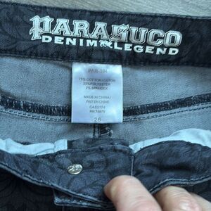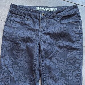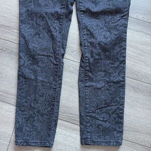 Preloved No major flaws Minor wash wear Grey and black floral pattern Waist: 14” Rise: 8” Inseam: 26”
