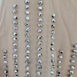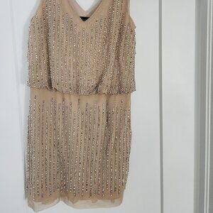 XSCAPE Dress Gold/Beige with vertical beads Size 4
