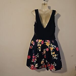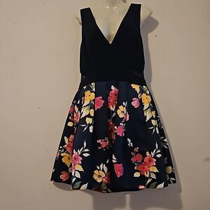 XSCAPE Women's Floral SideMesh Cutout Tutu Mini Dress 12 Navy Blue, Pink