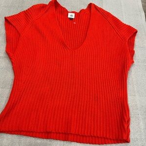 Vibrant red knit top with a stylish V-neck design. Perfect for casual wear.