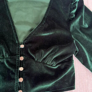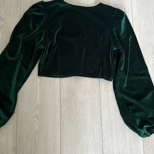 [XS]Green Velvet Cropped Retro LS Blouse
