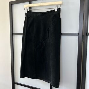 [XS/S] Vintage 100% Real Suede Black Midi Length Pencil Skirt Stunning