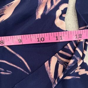[XS]Tori Richards Honululu Navy and Pink Leaf Print Avery Wide Leg Jumpsuit