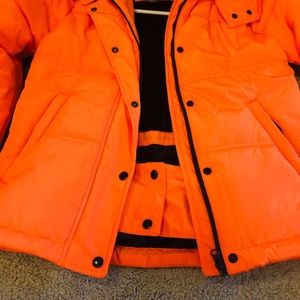 Detachable Hood, inside snaps (pictured), faux fur warm insulation