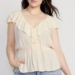 XXL - Old Navy | Waist-Defined Ruffle-Trim Top