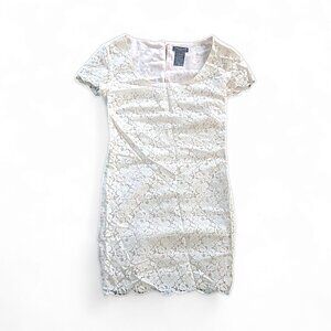 XXS Talula Sheath Dress Knee Length Short Sleeve Lined Floral Lace White