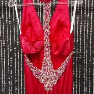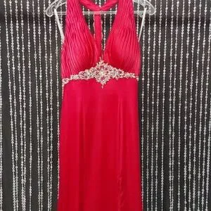 Xcite Satin Fancy Back Prom Dress 30189 Raspberry