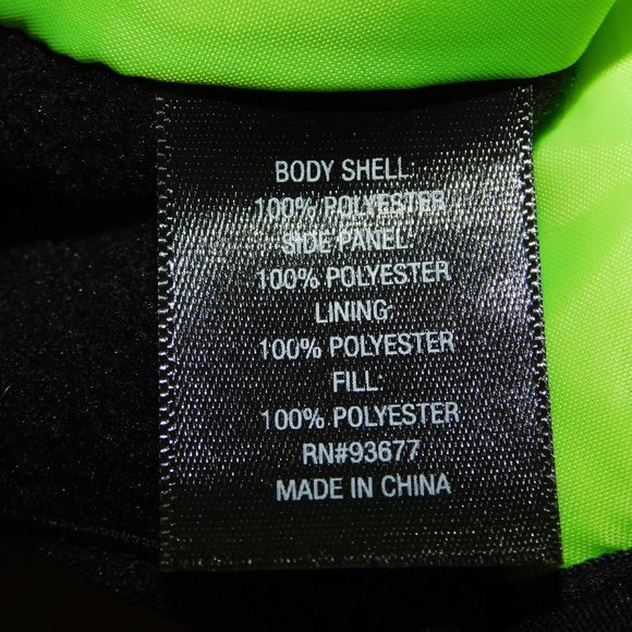 Features Quilted front and back panels with solid side panels with a bit of stretch and light fleece lining on inside of side panels. Zipper pocket on each side. Great for fall and winter walk to stay VERY visible or just stand out