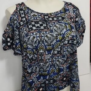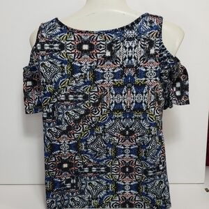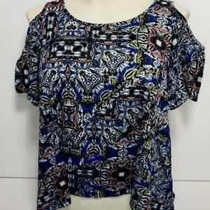 Xhilaration Cold Shoulder Patterned Blouse