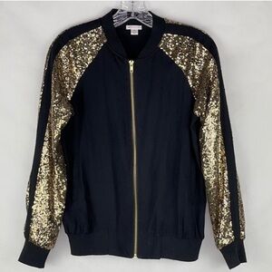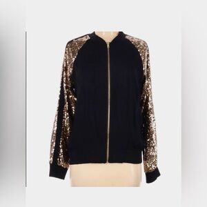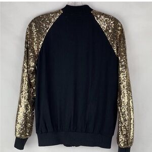 ✅Xhiliration gold sequin zip bomber sweatshirt / black/ front pockets/ NWOT 🖤💛