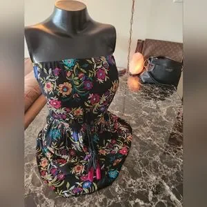 strapless dress. I've worn it multiple times and always received compliments. colors are beautiful
