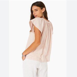 XiRENA sz S Jayde Baby Pink Stone Flutter Short Sleeve Blouse Top Boho Hippie