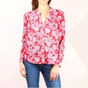 Xirena Jesse Tulum Floral Print Cotton Red Floral Blouse