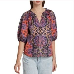 Xirena Jules Puff-Sleeve Top Womens Medium White Boho Luxe V-Neck Cotton Blouse