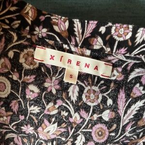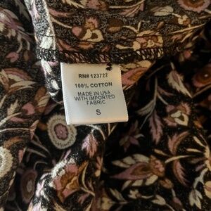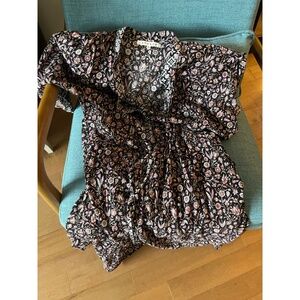 Black floral cotton fabric. Quite lightweight for summer. Waist tie. Buttons down the front to the waist.