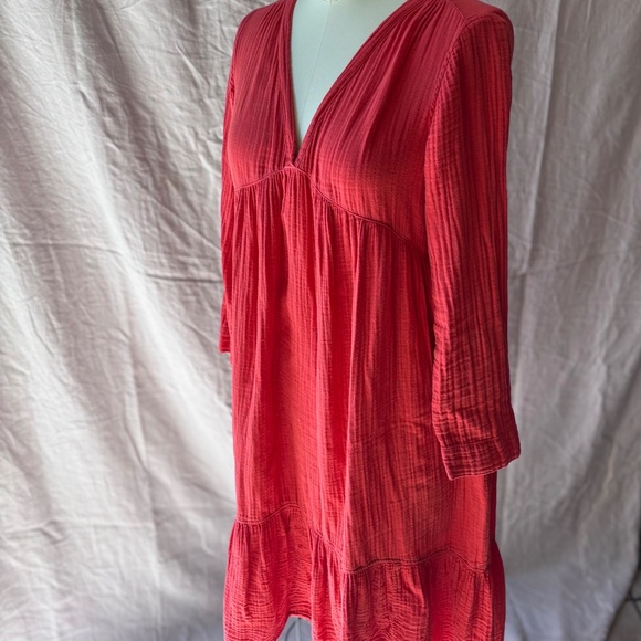 Xirena red midi dress size Medium, made from 100% cotton double gauze, soft, textured and not see through fabric. Slightly longer in length at the back.