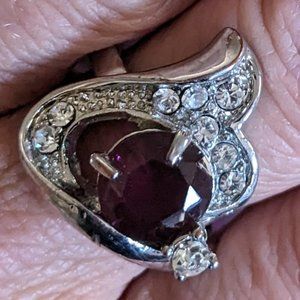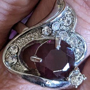 1" diameter band, gorgeous rhinestone and deep purple/red gemstone
