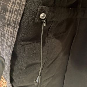 XNTRIK rain coat. Like new condition. Two front pockets. Zipper and snaps to close. Attached hood. Snap cuffs. Black with grey stripes. Pit to pit 20 1/2”.