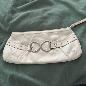 Xoxo white faux leather large wristlet clutch bag