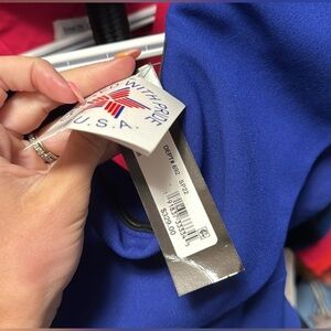 This dress has been shortened by a seamstress to be 3/4 length. See picture for reference. Worn once. Hand washed and stored away. No pets. No smoking home. Items always cleaned.