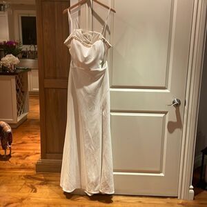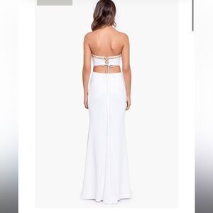 🎀Xscape Amabella lace up long strapless scuba crepe dress 16