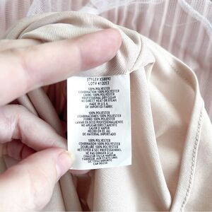 Xscape Blush Pink Lace Dress, Pleated, Fit and Flare, Semi-Formal, Special Occasion, Party Dress, Women 's 10. Half zipper and clasp closure at back. 4 layer skirt. Pink lace with chiffon skirt dress. There is also a tulle skirt underneath the chiffon skirt to add volume to the skirt. Very good used condition - small stain as indicated by arrow - see photos. Please see photos for approximate measurements.