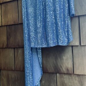 Xtraordinary One Shoulder Sequin Wrap Drape Mini Dress Blue Size 5