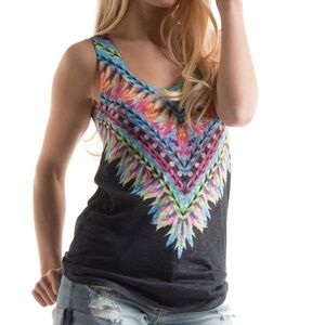 Xync Black Multi Top Tank Shirt Bold Geometric Graphic Tie Dye Tribal print NIP