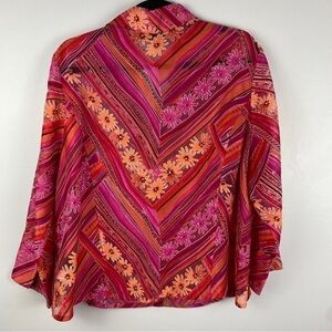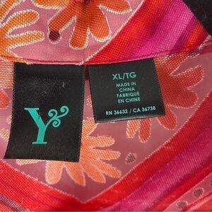 Y Pink Orange Floral Semi Sheer Rayon Linen Blend Floral Blouse XL