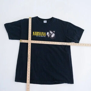 Rock a vintage vibe with the Y2K Anvil Black Nirvana "With The Lights Out" Pre-Shrunk Short Sleeve T-shirt, available in size Large. This iconic shirt seamlessly blends comfort with the legendary presence of Nirvana, capturing the essence of classic rock fandom.