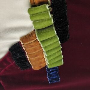 God condition, black velvet has two areas in back where it is worn from sitting in dress and small pinhole in back where price was punched