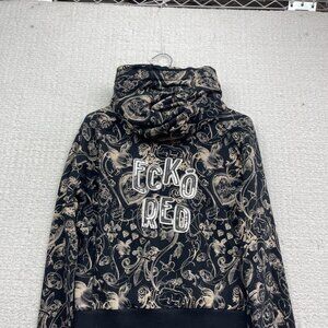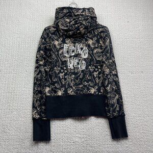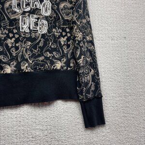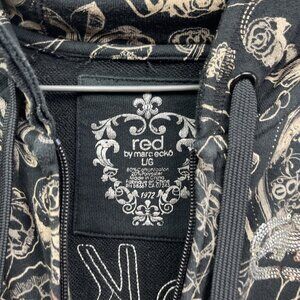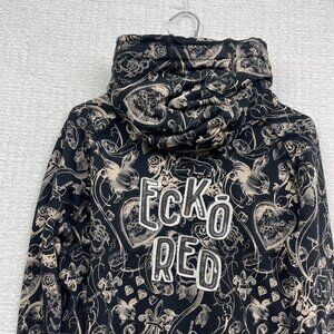 Y2K 90s Women's L Red by Marc Ecko Graphic Logo Hoodie Goth Emo Skull Rose AOP