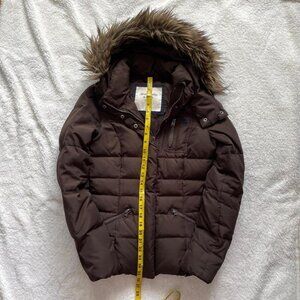 Y2K Abercrombie and Fitch Brown Puffer Jacket with Faux Fur Hood