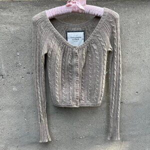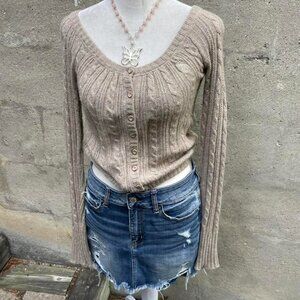 Y2K Abercrombie and Fitch Tan Cable-Knit Button-Up Cardigan